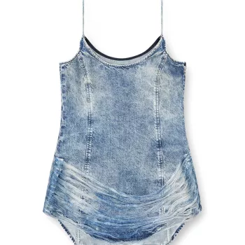 Diesel Denim Mini Dress with Straps and Trompe L’Oeil Side Panel Detailing
