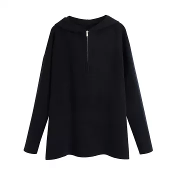 Women's Casual Knit Hooded Zipper Sweatshirt – Loose Fit, All-Season Style