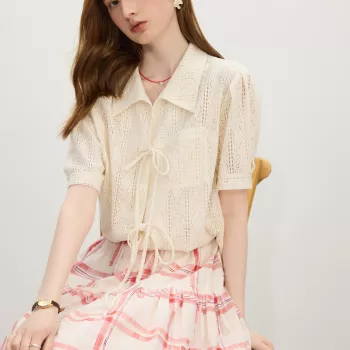 Women's Summer Knit Lace Cardigan – Short Sleeve Tie Front Cover-Up